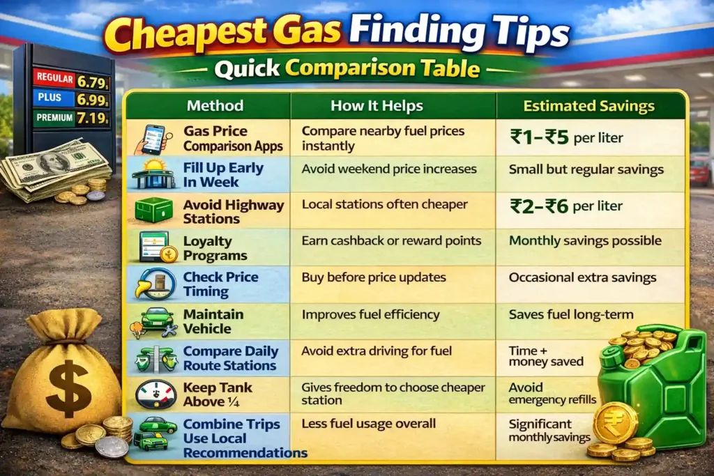 Cheapest Gas Finding Tips – Quick Comparison Table